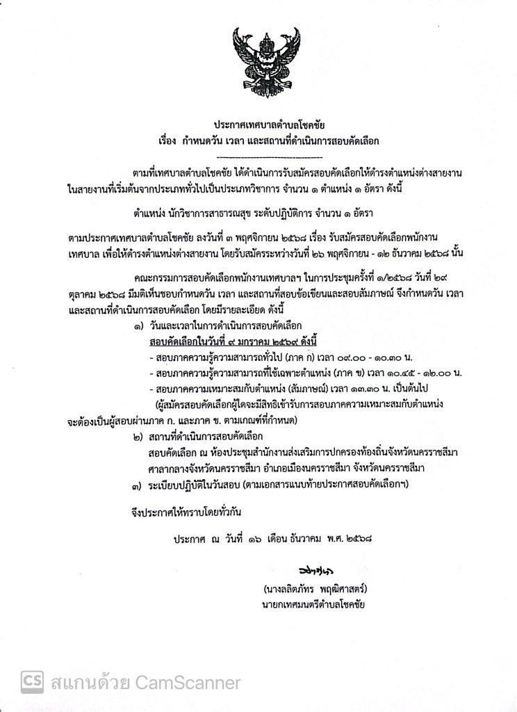 ประกาศเทศบาลตำบลโชคชัย เรื่อง กำหนดเวลา และสถานที่ดำเนินการสอบและสถานที่ดำเนินการสอบคัดเลือก 16 ธ.ค. 68 แชร์