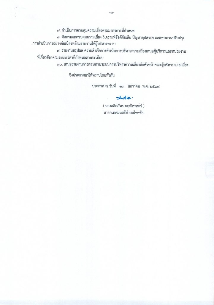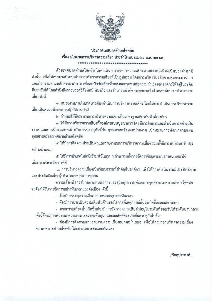 ประกาศเทศบาลตำบลโชคชัย เรื่อง นโยบายบริหารความเสี่ยง ประจำปีงบประมาณ พ.ศ. 2569 13 ม.ค. 69 แชร์ ประกาศเทศบาลตำบลโชคชัย เรื่อง นโยบายบริหารความเสี่ยง ประจำปีงบประมาณ พ.ศ. 2569