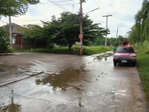 เทศบาลตำบลโชคชัยรายงานสถานการณ์น้ำท่วมขังบริเวณซอยสุขภิรมย์ ปริมาณน้ำลดลง รถสามารถสัญจรได้ตามปกติ”