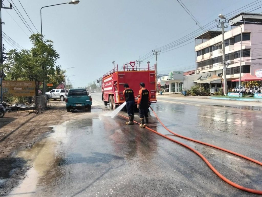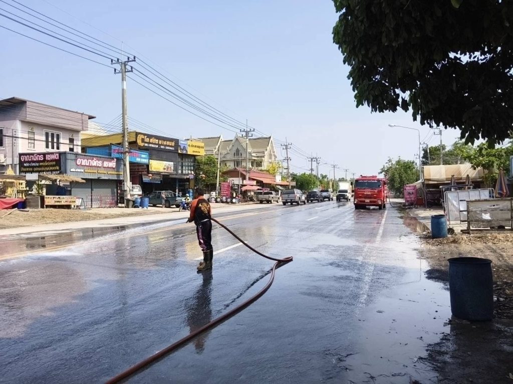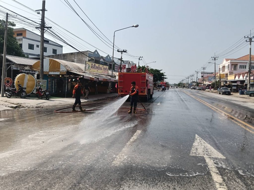 เจ้าหน้าที่งานป้องกันและบรรเทาสาธารณภัย ร่วมกับเจ้าหน้าที่กองสาธารณสุขและสิ่งแวดล้อม เจ้าหน้าที่งานเทศกิจ ลงพื้นที่ล้างทำความสะอาดถนนสาย 224 ภายในเขตเทศบาลตำบลโชคชัย เพื่อขจัดคราบสิ่งสกปรก เศษขยะ และคราบน้ำจากกิจกรรมช่วงเทศกาลสงกรานต์ ลดการสะสมของเชื้อโรค และฟื้นฟูสภาพแวดล้อมให้กลับมาสะอาด น่าอยู่ และปลอดภัย